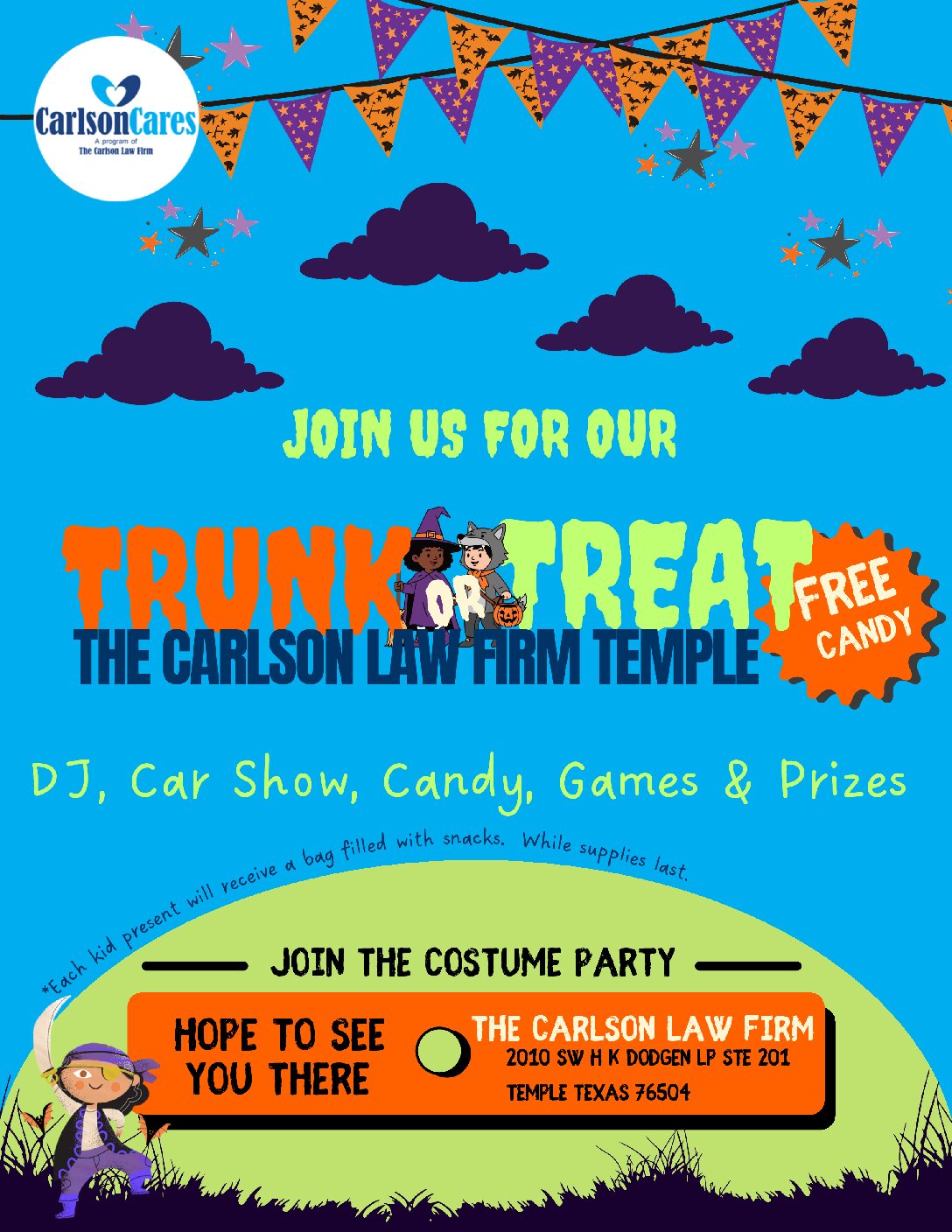 The Carlson Law Firm-Templehttps://carlsoncares.org/event/temple-trunk-or-treat-2/2010 SW H K Dodgen LoopJoin The Carlson Law Firm in Temple we’re celebrating with YOU!