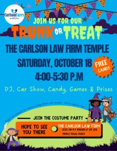 https://carlsoncares.org/event/temple-trunk-or-treat-2/The Carlson Law Firm-Temple2010 SW H K Dodgen LoopJoin The Carlson Law Firm in Temple we’re celebrating with YOU!