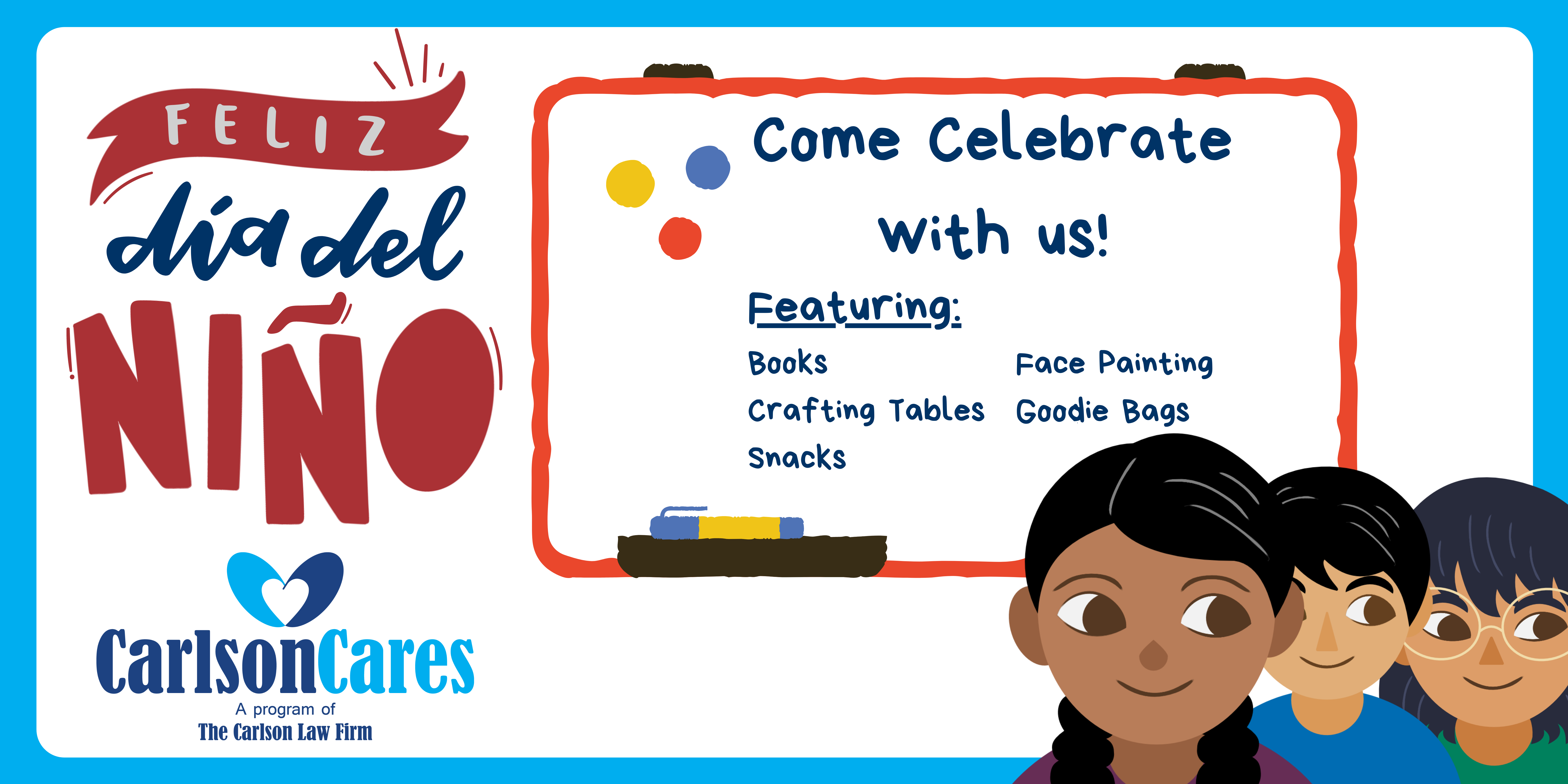 https://carlsoncares.org/event/dia-del-nino-book-giveaway/The Carlson Law Firm1109 W Baker Rd Suite A, Baytown, TX 77521Carlson Cares is bringing the party to Baytown families on Dia del Niño to help celebrate. Join us in taking some time to appreciate the wonder and growth children bring to our lives!